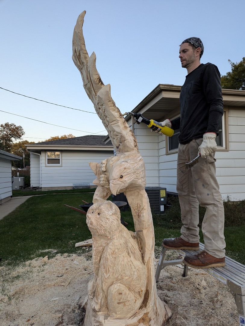 I have carved in Illinois, Nebraska, and northern Wisconsin in Lincoln County. I will travel for the right price. If you can find other work for me in your area I will give you a discount. Check out my FAQs about prices. Please contact me for a quote.