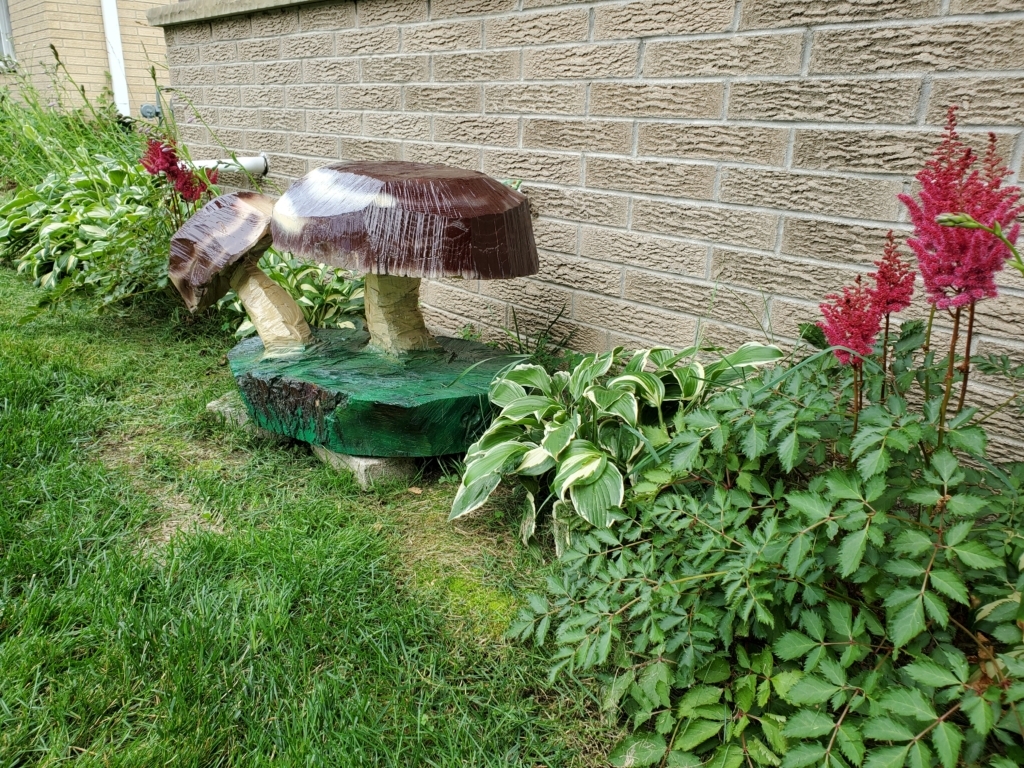 SOLD. A similar woodcarving can be ordered. It will have one coat of varnish. It would look great in landscaping or a garden. Please refer to pricing guide here.