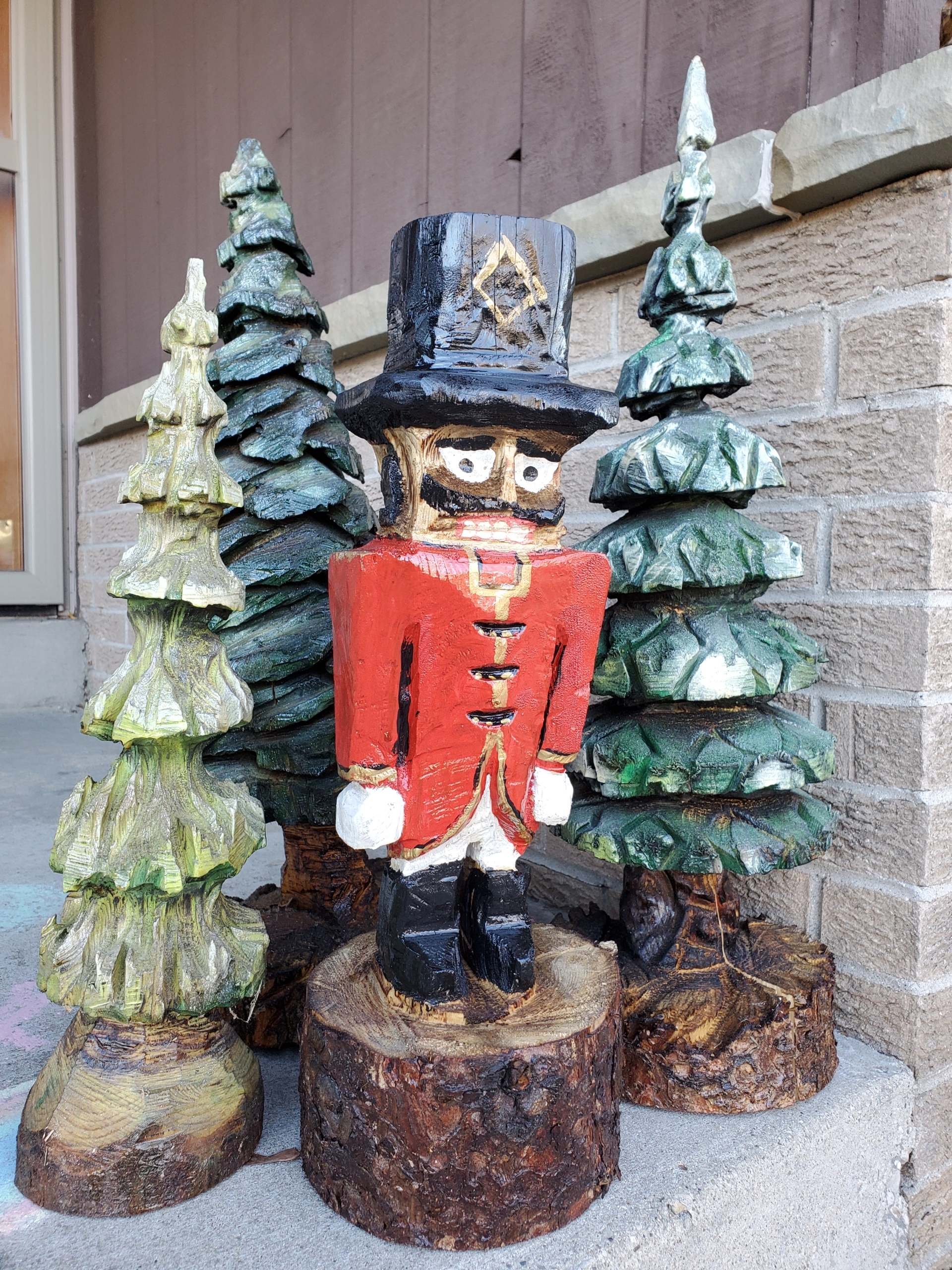*Nutcrackers & trees come in a variety of styles and are a unique piece of art. Diameters sizes above are represented as ranges because they are not always a perfect circle. Special orders or sets may take extra time to fulfill and pricing will be discussed ahead of time. There will always be a discount for sets. All wood carvings are a part of the austere and rugged nature of the wood and chainsaw; naturally, your piece will be rustic, form cracks, and give the appearance of chainsaw marks. Please see FAQ’s for woodcarving care.